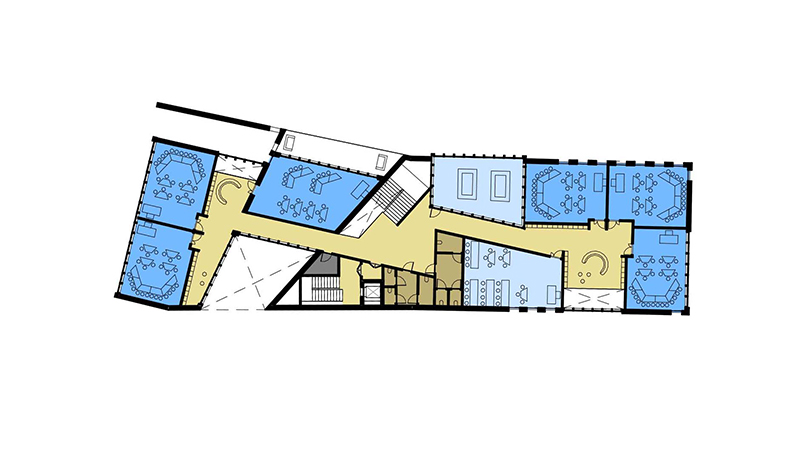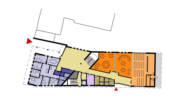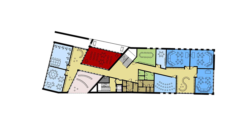 La configurazione architettonica è quindi il risultato dell’integrazione fra il programma funzionale e la logica insediativa suggerita dal contesto.